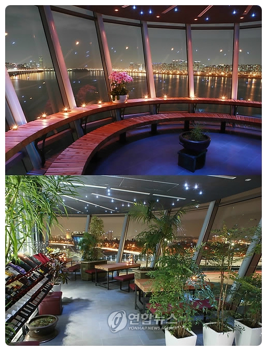 Cloud cafe and Red Sky cafe draw attention as a comfortable resting place with lights from the ceiling and scents of aroma. In addition, both of these places have been recognized as the most appropriate places to see the fountain show around Banpo Bridge, floating Island, and 63 Building, and also beautiful scenery of the Han River with sunset. Of course, they serve the wonderful cuisine.